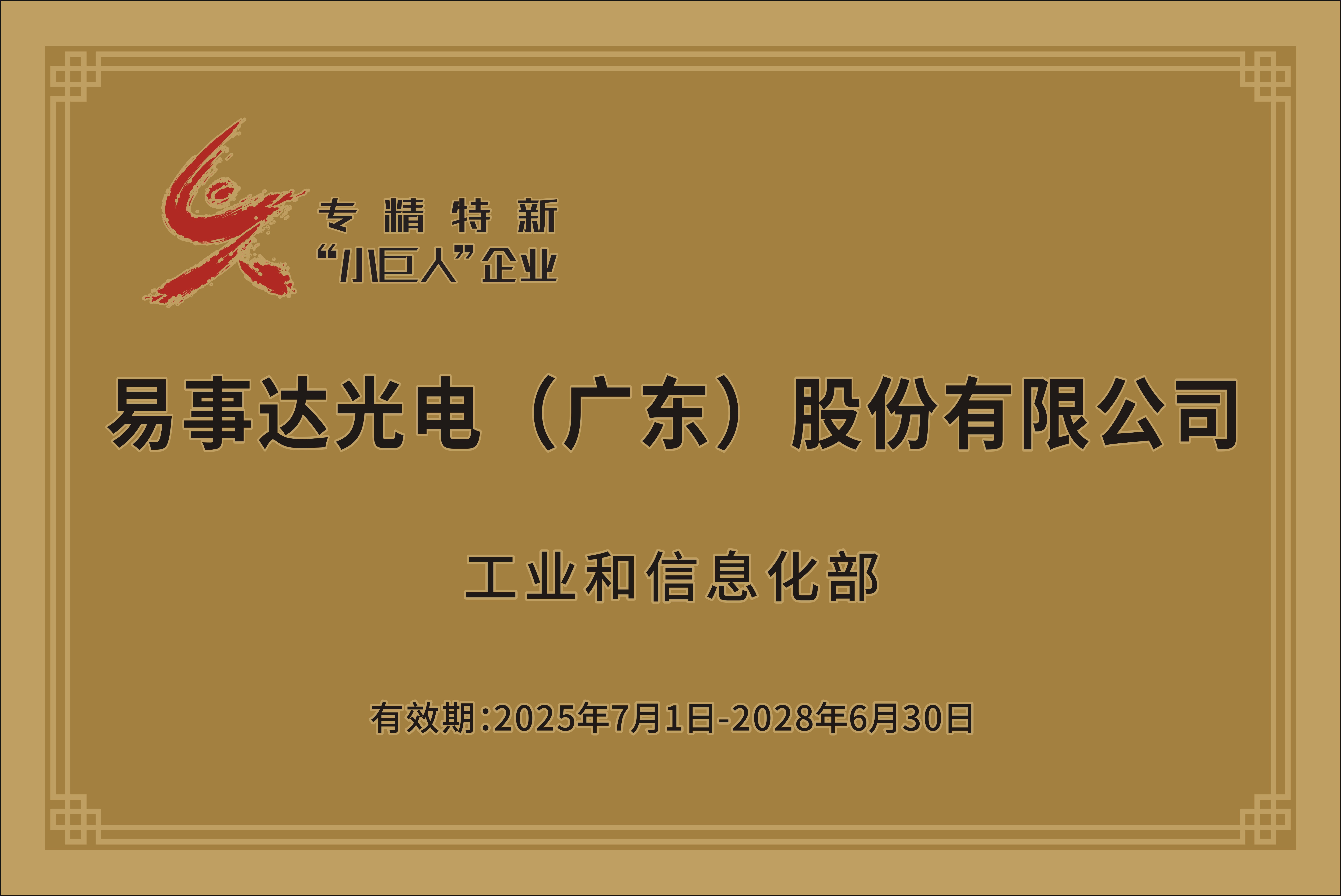 易事达光电荣膺2025年国家级专精特新“小巨人”企业称号!