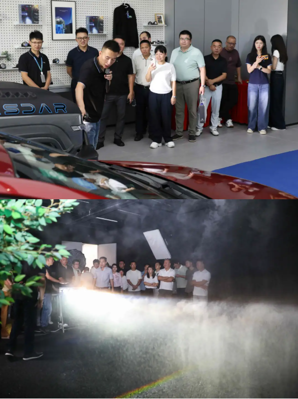 启动仪式结束后,车灯升级体验中心的参观环节即刻开启。易事达车灯升级体验中心技术总监石总亲自带队,引领全场嘉宾逐一走访体验中心的各个区域。过程中,石总不仅详细介绍了中心的布局与服务体系,更着重引导大家近距离体验易事达透镜车灯产品 —— 从光学设计的精妙到照明效果的卓越,全方位展现产品的独特优势与非凡魅力。